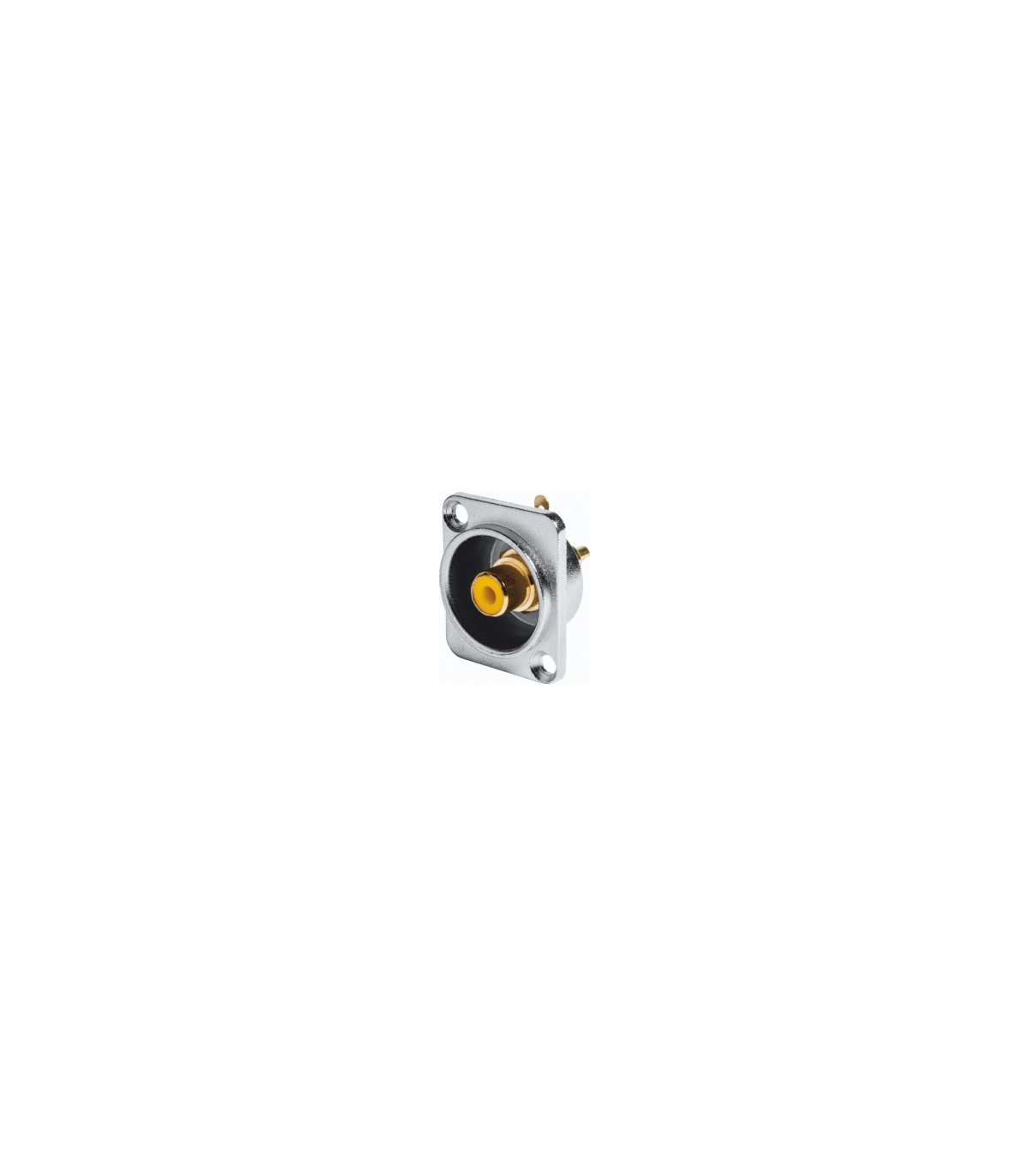 Chasis metálico hembra atornillable para conectores RCA.